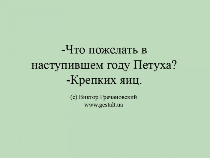 -Что пожелать внаступившем году Петуха?-Крепких яиц.