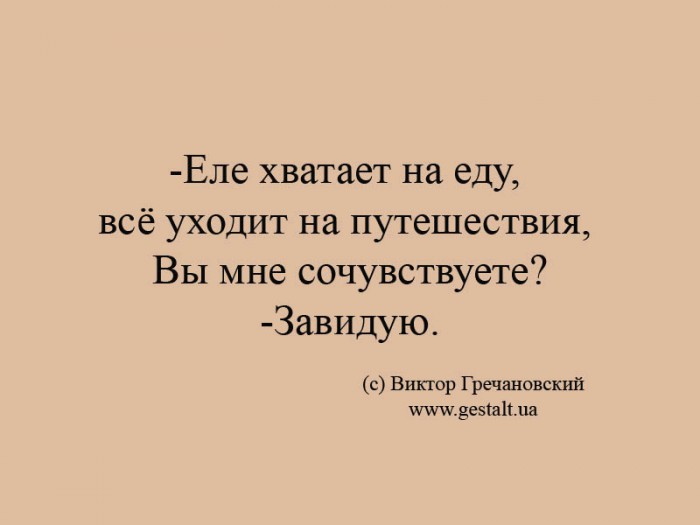 -Еле хватает на еду, всё уходит на путешествия, Вы мне сочувствуете? -Завидую.