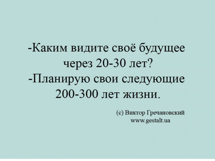 -Каким видите своё будущее через 20-30 лет? -Планирую свои следующие 200-300 лет жизни.