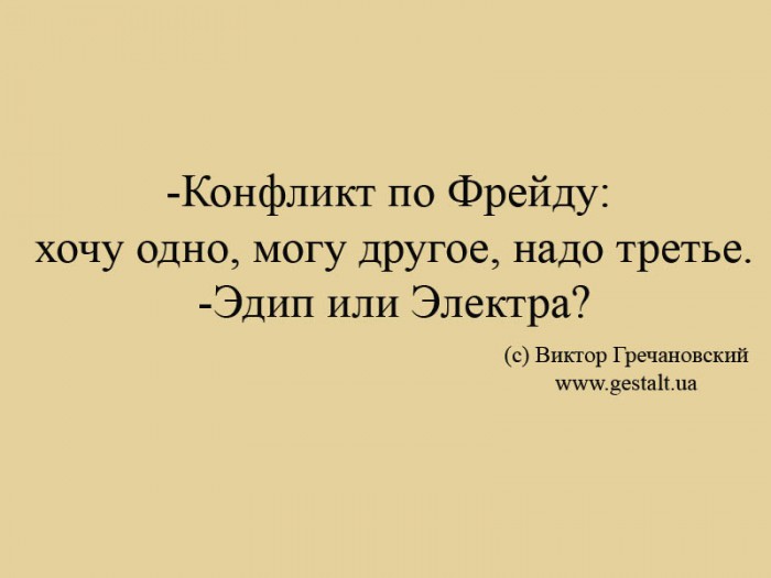 -Конфликт по Фрейду: хочу одно, могу другое, надо третье. -Эдип или Электра?