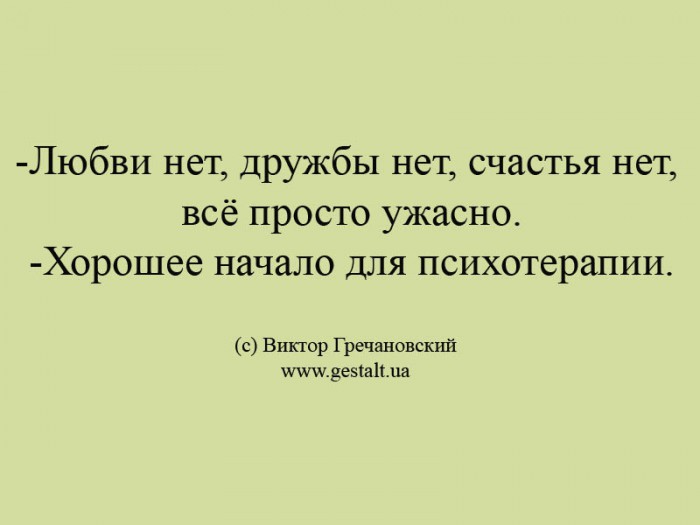 -Любви нет, дружбы нет, счастья нет, всё просто ужасно.-Хорошее начало для психотерапии.
