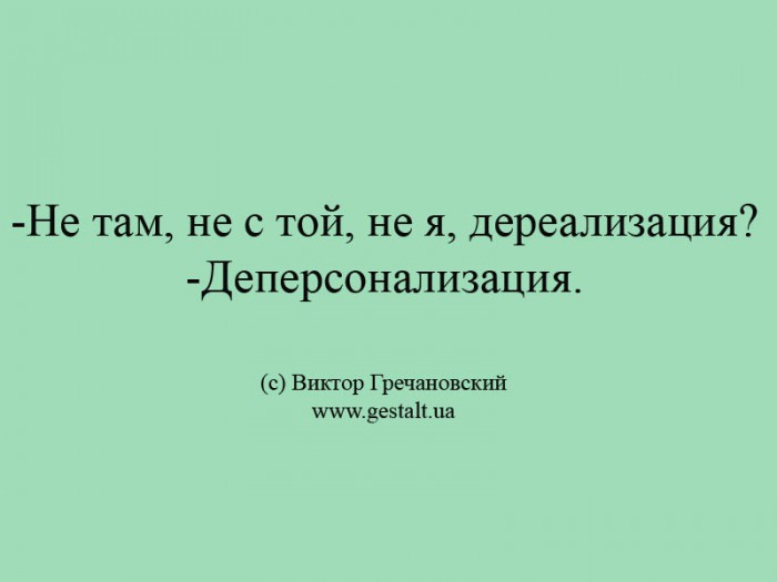 -Не там, не с той, не я, дереализация?-Деперсонализация.