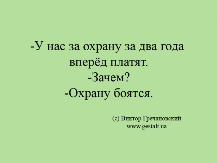 -У нас за охрану за два года вперёд платят.-Зачем?-Охрану боятся.