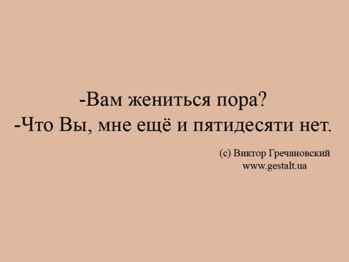 -Вам жениться пора? -Что Вы, мне ещё и пятидесяти нет.