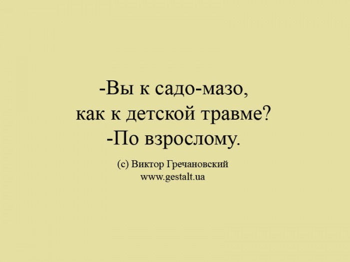 -Вы к садо-мазо, как к детской травме? -По взрослому.