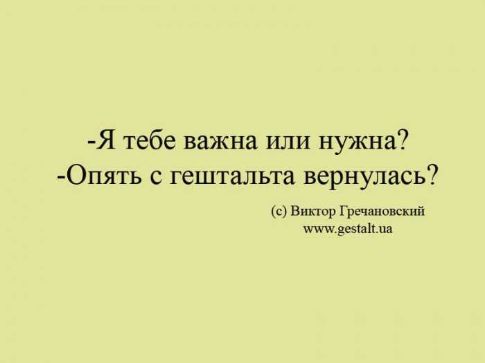 "-Я тебе важна или нужна?-Опять с гештальта вернулась?"(с) Виктор Гречановскийwww.gestalt.ua