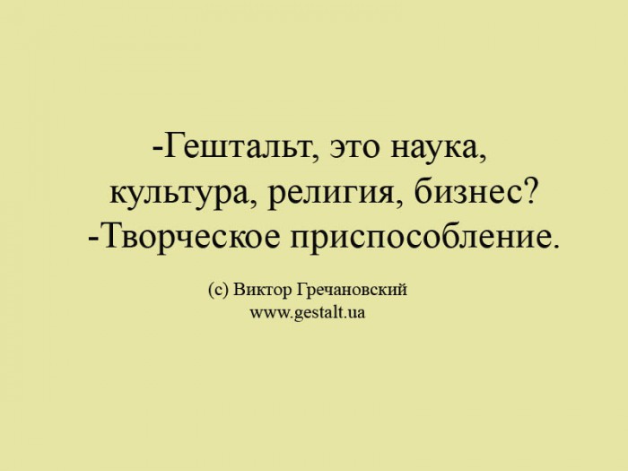 Гештальт, это наука, культура, религия, бизнес? Творческое приспособление.