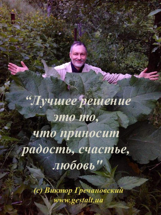 "Лучшее решение, это не всегда новое, не обязательно старое, но всегда актуальное. Лучшее решение это то, что приносит радость, счастье, любовь."(с) Виктор Гречановский