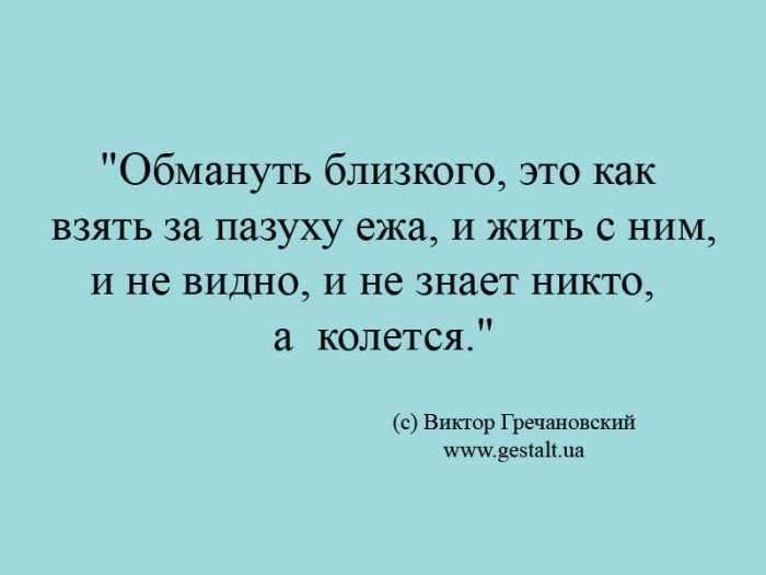 "Обмануть близкого, это как взять за пазуху ежа, и жить с ним,и не видно, и не знает никто, а колется."