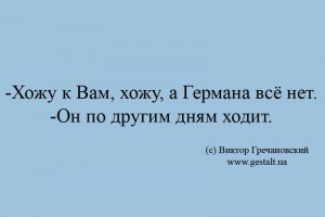 -Чувствую себя чужим. -А Вы не разувайтесь и руки не мойте.
