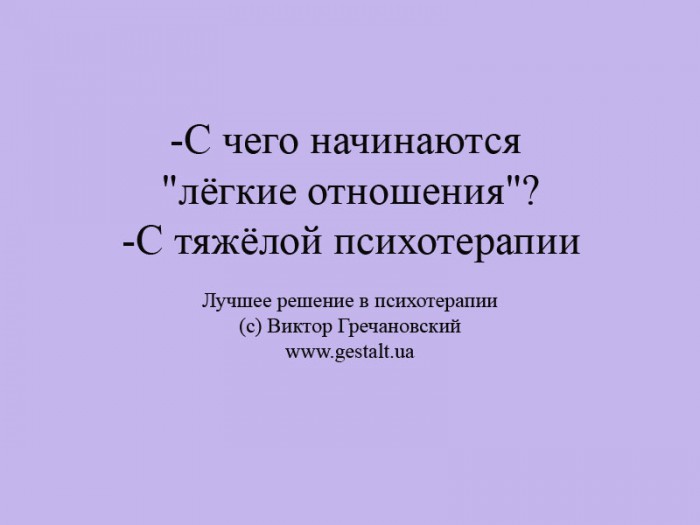 -С чего начинаются "лёгкие отношения"?-С тяжёлой психотерапии(с) Виктор Гречановский