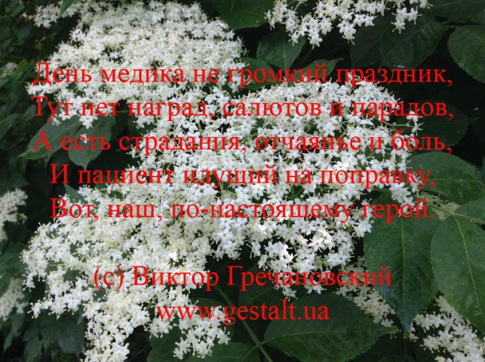 День медика не громкий праздник,Тут нет наград, салютов и парадов,А есть страдания, отчаянье и боль,И пациент идущий на поправку,Вот, наш, по-настоящему герой.(с) Виктор Гречановский