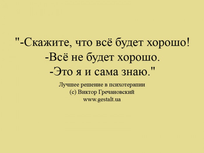 Психотерапия Лучшего решения помогает найти собственные, под час непростые ответы на индивидуальные вопросы человека. И такой привычный слоган, как например, "всё будет хорошо" естественно нуждается в проработке существующих на индивидуальном уровне обобщений, образов, смыслов и жизненно важных решений.